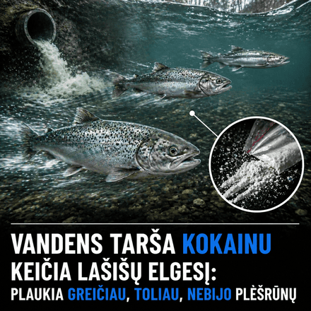 Ir būtent čia atsiranda netikėtas posūkis. Kokaino pėdsakai vandenyje gali pakeisti lašišų judėjimą taip, kad jos plaukia aktyviau, drąsiau ir dažniau patenka į zonas, kur tyko plėšrūnai.